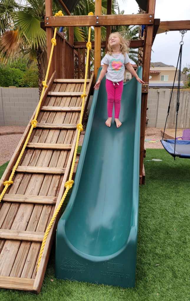I recently took these photos of Keira when she was playing on Livvy’s Make-a-Wish swing set, and I can’t stop thinking about them. I’m sure to a “normal” parent, this would look like everyday life. But to me, seeing Keira’s face in both pictures…it just exudes hope, joy, happiness, and gratefulness. Her standing there, so strong…it’s what a miracle looks like (to us anyway). It is something her sister Livvy was never able to do. And the fact that Keira can, will forever blow me away.